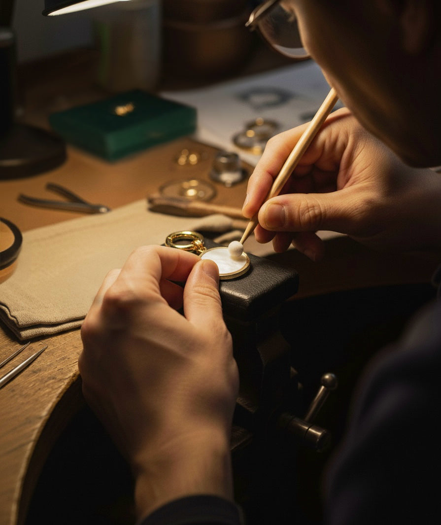 Ein Geschenk des Meeres. Perlmutt schimmert in sanften, natürlichen Nuancen und steht für Harmonie, Liebe und emotionale Balance. Es fängt das Licht auf besondere Weise ein und verleiht jedem Schmuckstück zeitlose Eleganz.
